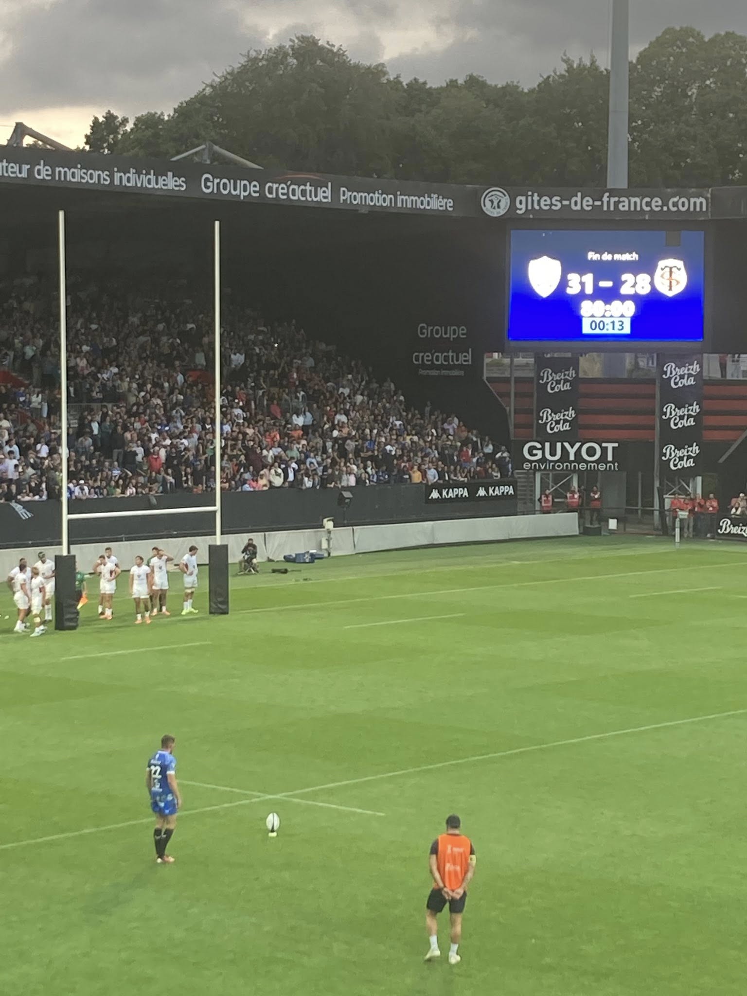 Une ambiance exceptionnelle, un match plein et surtout une victoire du RC Vannes, face à la meilleure équipe du monde, au terme d’un suspens incroyable. Essai de la victoire à la 80 ième.